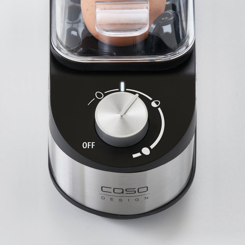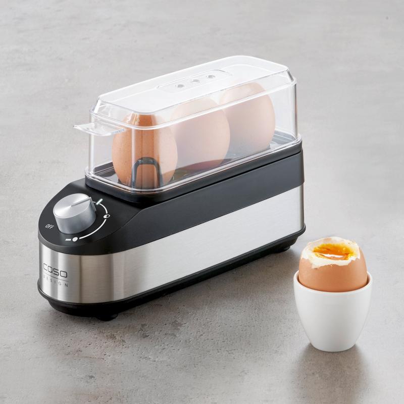 Caso Æggekoger E3 Denne pladsbesparende æggekoger gør det nemt at tilberede op til 3 æg – helt uden besvær med gryde, vandmåling eller gætteri. Den