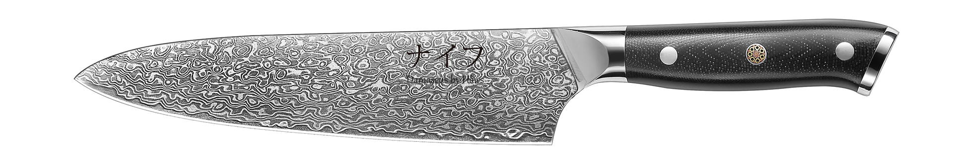Damascus Chef kokkekniv med sort skaft