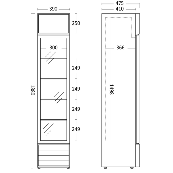 - Produktmål, HxBxD, mm1 880 x 390 x 475