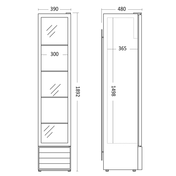 - Produktmål, HxBxD, mm 1892 x 390 x 475