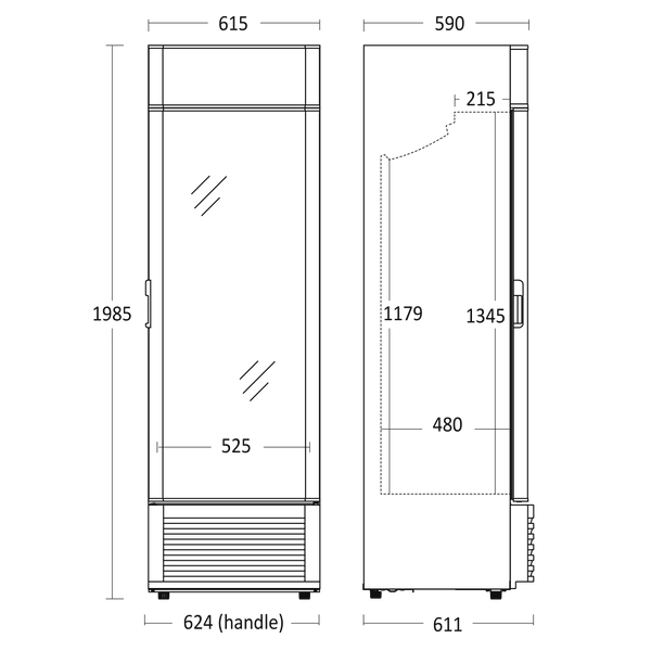 - Produktmål, HxBxD, mm 1990 x 615 x 610