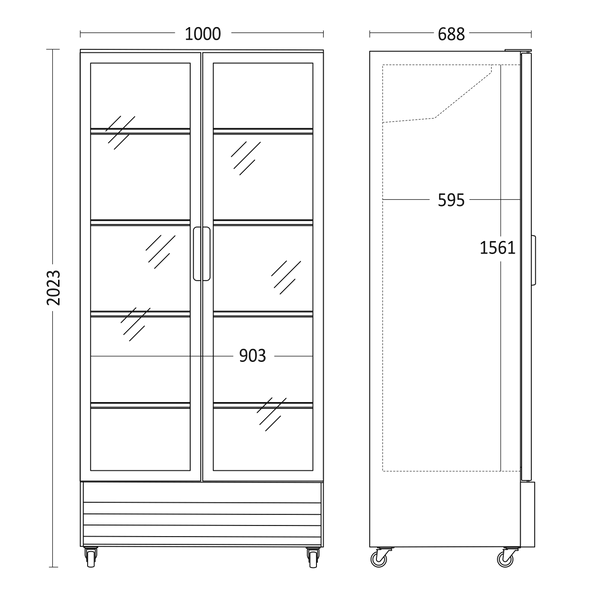 - Produktmål, HxBxD, mm 2023 x 1000 x 720