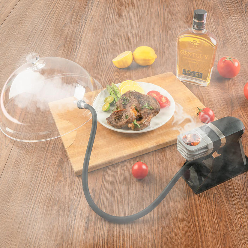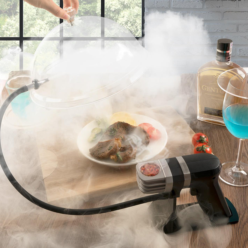 HÂWS RØG PISTOL + KUPPEL Hâws håndholdt røg pistol til fødevarer hæver din madlavning til næste niveau. Giv dit kød, ost, cocktail mm. en ny