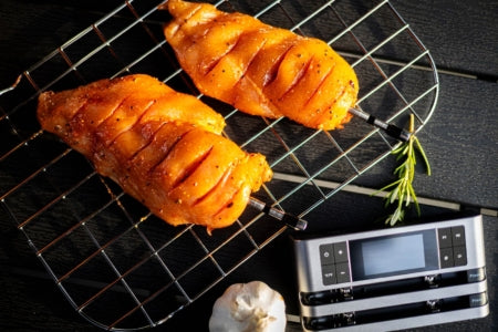 De vandtætte og slidstærke termometre har lang batteritid og en rækkevidde på op til 244 meter, så du kan bevæge dig frit, mens maden passer sig selv.