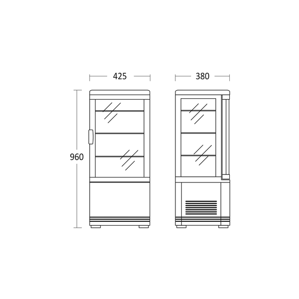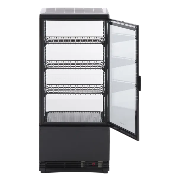Kølemontre 78 liter sort - RT 82 BE Scancool Produktmål, HxBxD, mm 960 x 428 x 386 Bruttovolume, ltr 78 Brand: Scancool Dobbeltglas på fire