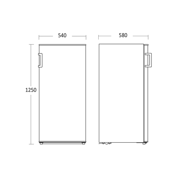 - Produktmål, HxBxD, mm 1250 x 540 x 580