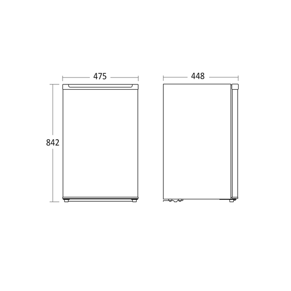 Køleskab 93 liter - SKS 92 W Scandomestic Brand: Scandomestic Produktmål, HxBxD, mm 842 x 475 x 448 Bruttovolume, ltr 93 Vendbar dør Justerbare hylder