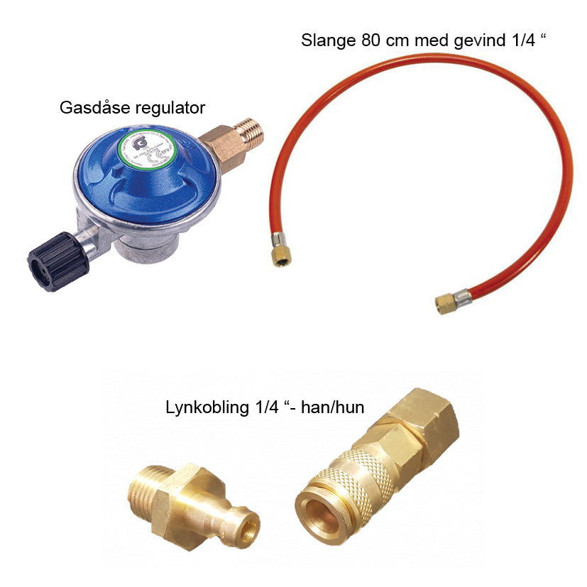 Komplet regulatorsæt til nem tilslutning af gasdåse