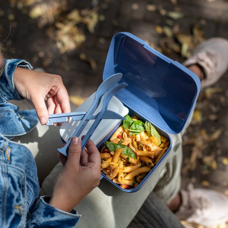 Koziol Candy madkasse med bestik blå - Organisk materiale