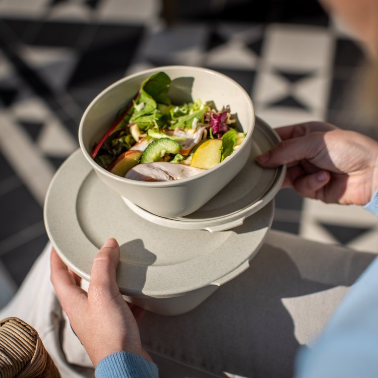 Koziol Skåle med låg 0,7L+1,3L, Connect Box Set Kopenhagen, Desert Sand 100% naturlig - Dette nye produkt er produceret udelukkende af Bio-Cirkuler termoplast og FSC