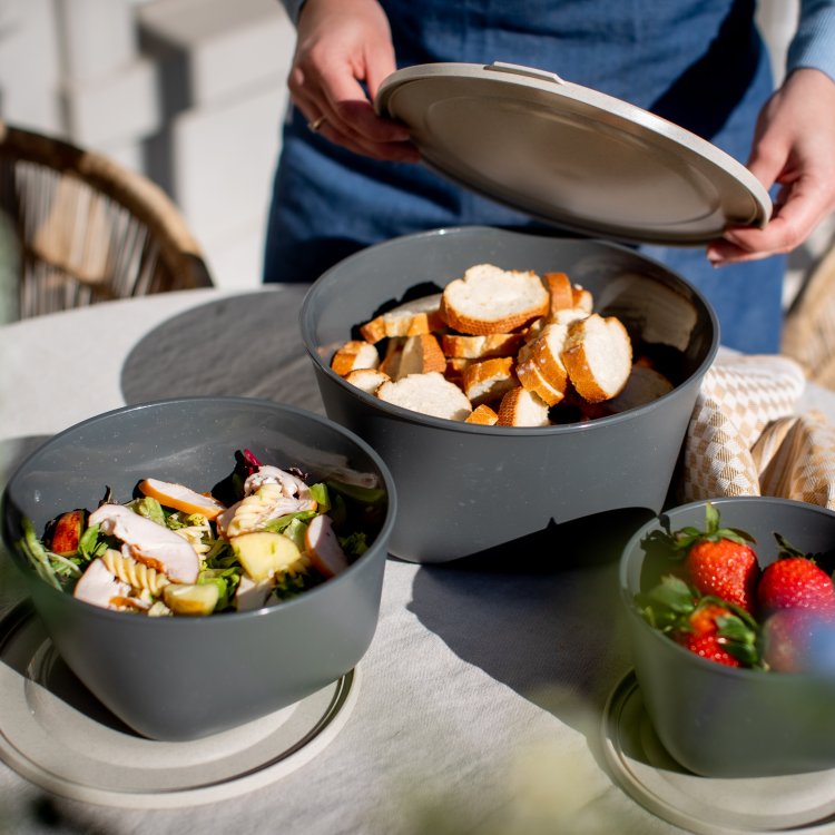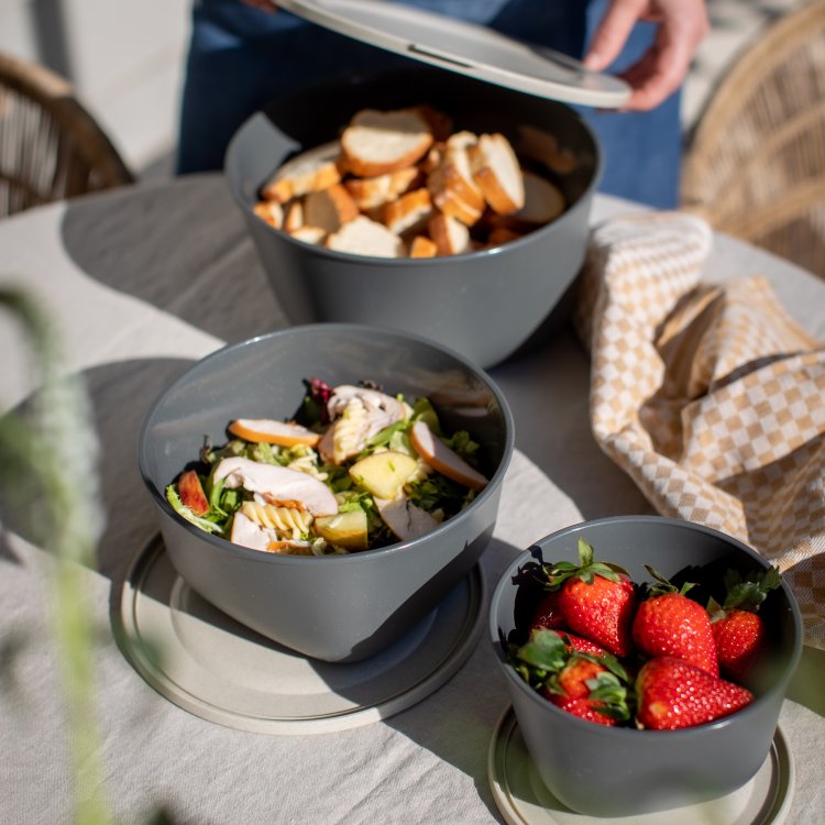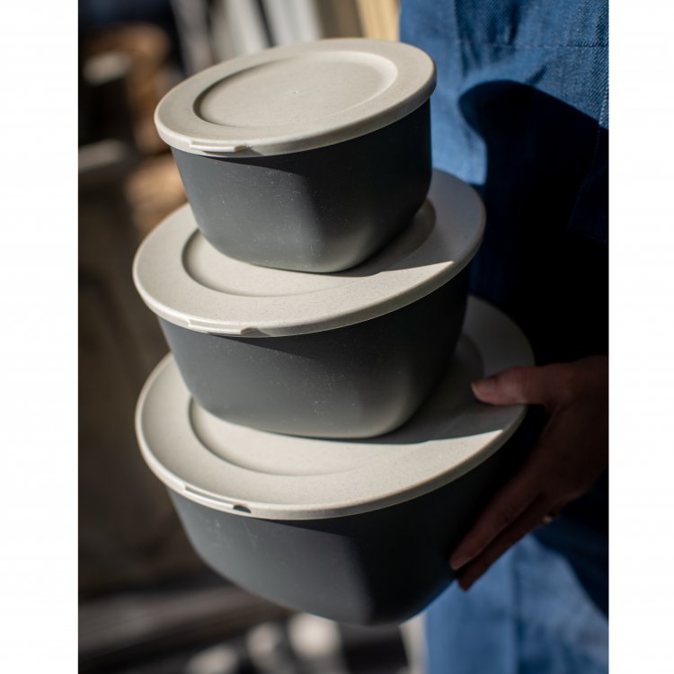 Koziol Skåle med låg 1L+2L+4L, Connect Box Set Stockholm, Ash Grey 100% naturlig - Dette nye produkt er produceret udelukkende af Bio-Cirkuler termoplast og FSC