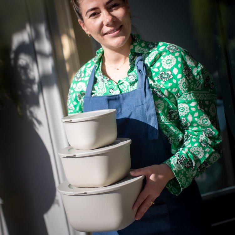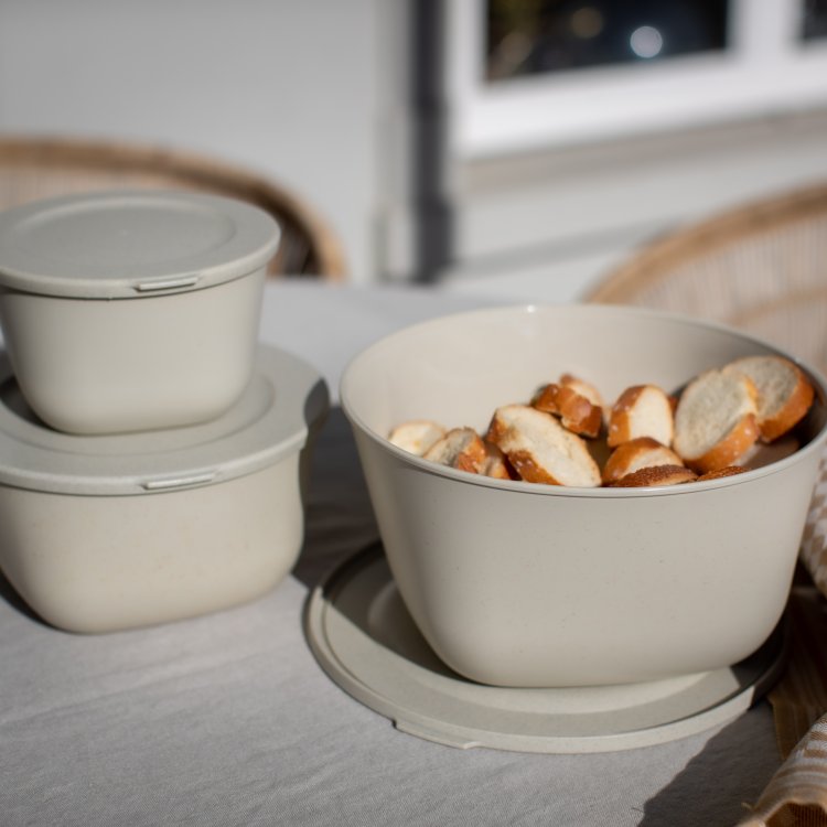 Koziol Skåle med låg 1L+2L+4L, Connect Box Set Stockholm, Desert Sand 100% naturlig - Dette nye produkt er produceret udelukkende af Bio-Cirkuler termoplast og FSC