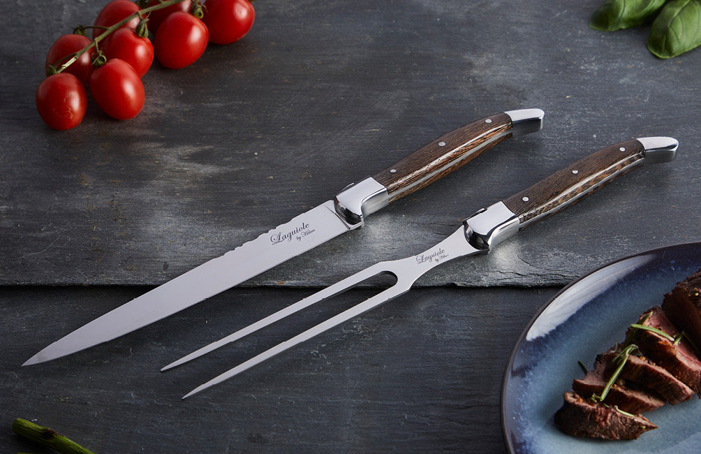 Laguiole forskærersæt med Wenge træskaft Denne pakke indeholder Haws Laguiole udskærings kniv og stegegaffel med det legendariske Laguiole design som er Fransk design når det