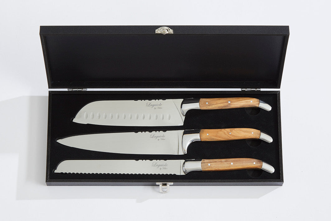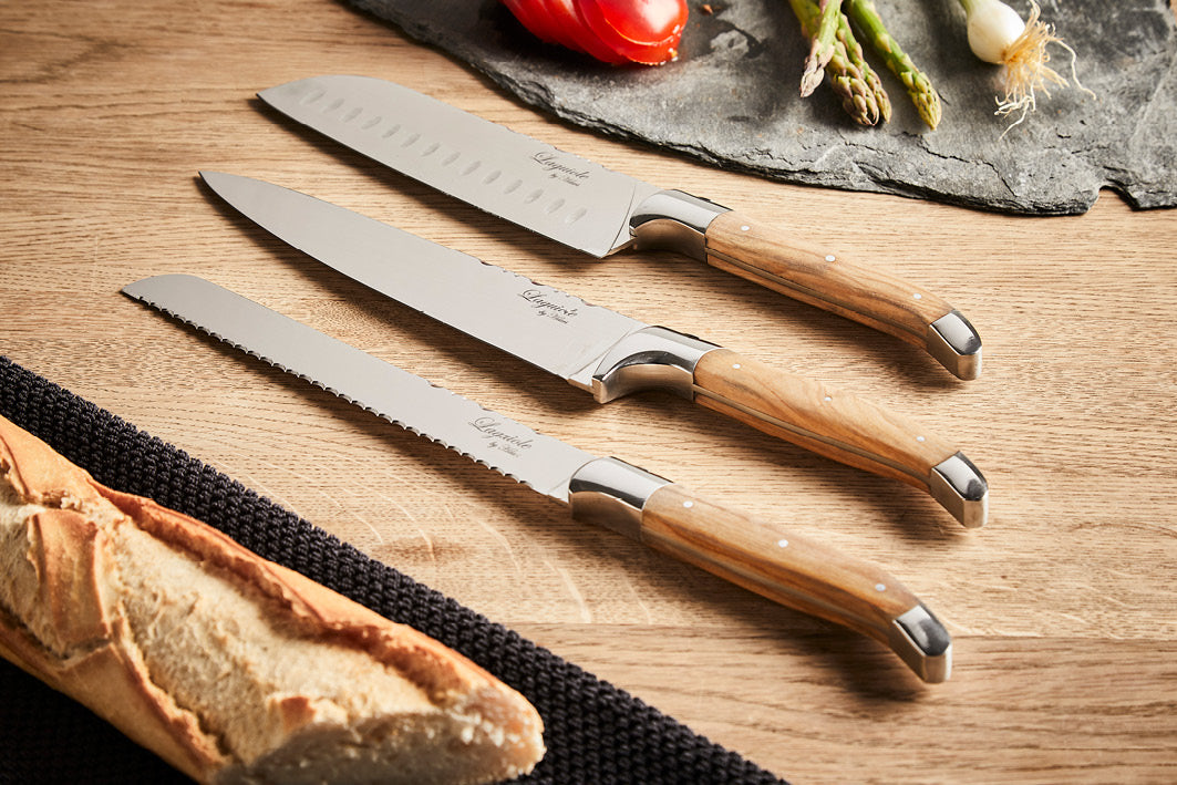 Laguiole køkkenknive 3 stk. + knivmagnet til væg
