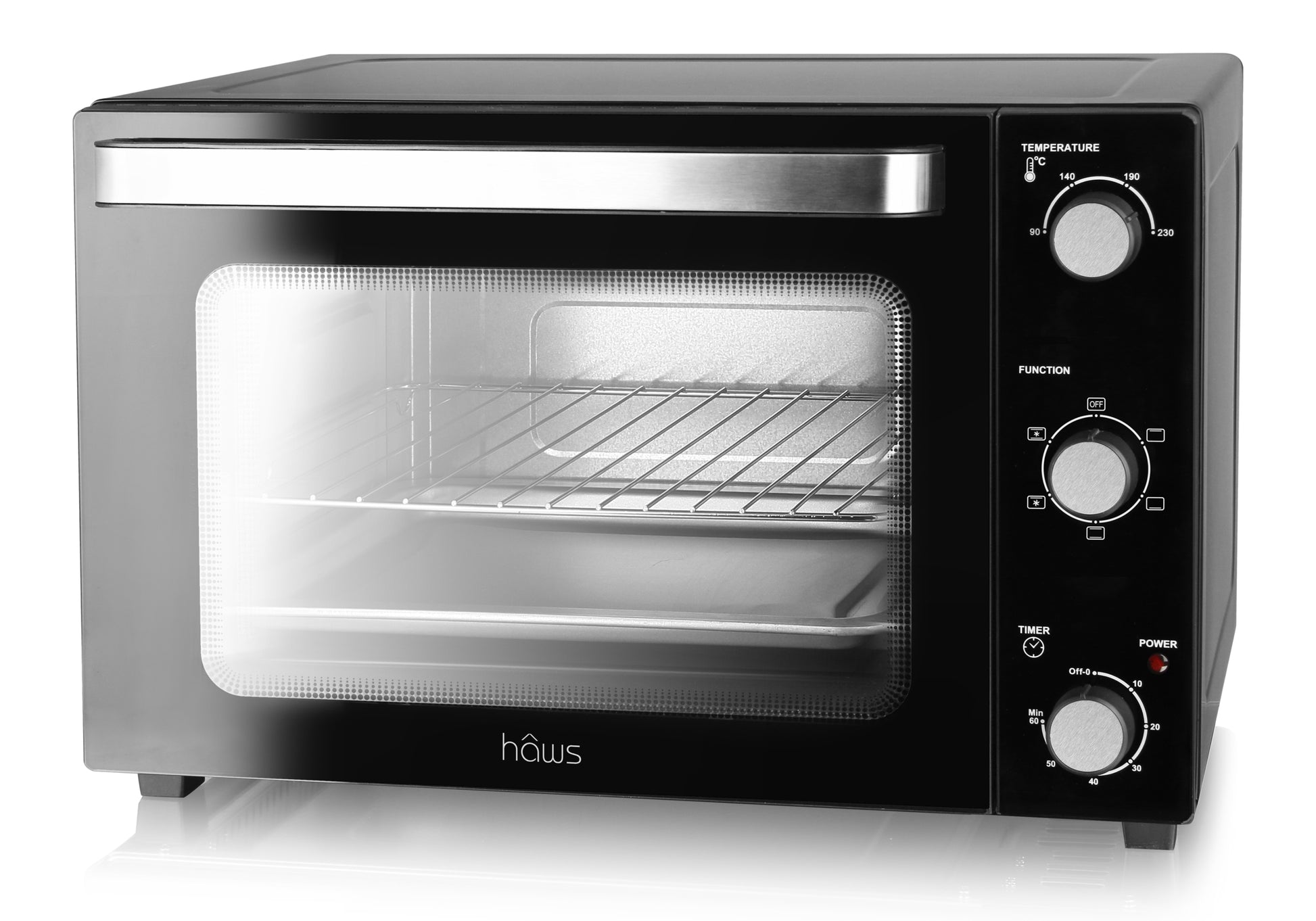 Haws multiovn har en kapacitet på 58 liter med varmluft funktion, passer perfekt ind i de små køkkener som mange ofte har på camping, i sommerhuset eller en lille lejlighed. Den har både under-og overvarme. Temperaturen kan indstilles på produktet fra 90 - 230 grader og har en timer der går op til 60 min. Med ovnen kan du både lave pizza, brød, kager, lasagne mm. Passer til en pizza Ø35 cm.