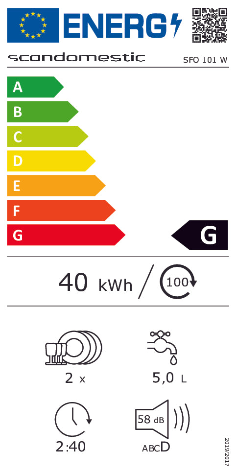 Opvaskemaskine bord model - SFO 101 W Scandomestic Produktmål, HxBxD, mm 435 x 420 x 435 Lydniveau, dB (A)58 Brand: Scandomestic Bruger kun 5 ltr,