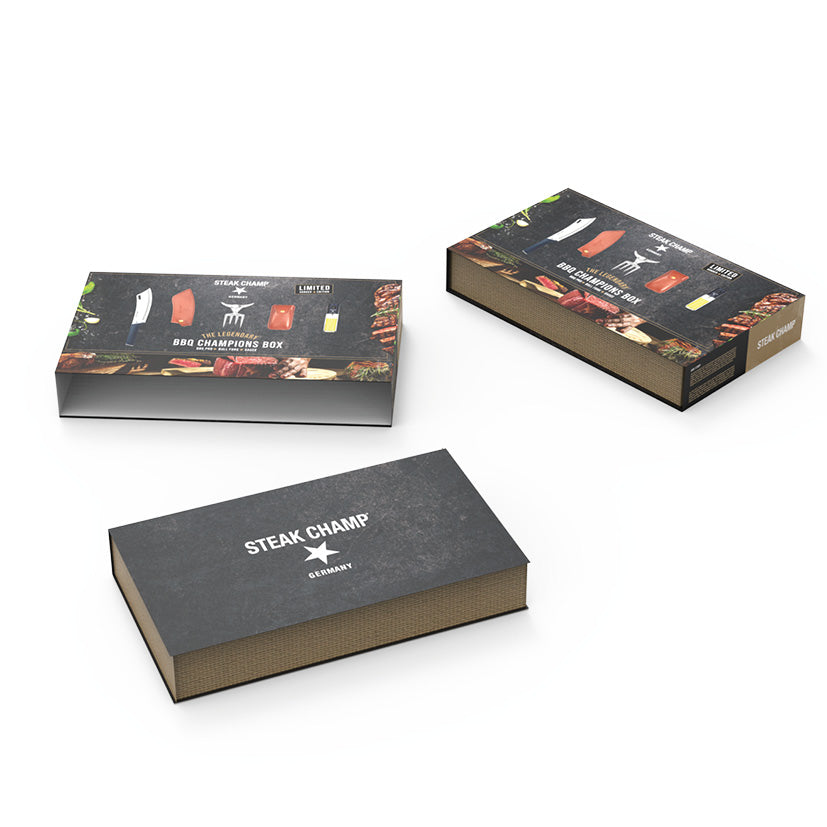 Steak Champs grillsæt til grill entusiasten i gaveæske Premium-gaven til grilleksperten Denne gaveæske af høj kvalitet indeholder Steak Champs top produkter. Den legendariske "Bull Fork"