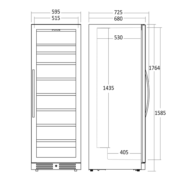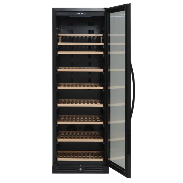 Vinkøleskab SV 111 B til 126 flasker - 1 zone - Scandomestic Brand: Scandomestic Produktmål, HxBxD, mm 1764 x 595 x 680 Bruttovolume, ltr 461