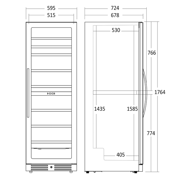 Vinkøleskab SV 124 B til 126 flasker - 2 zoner - Scandomestic Brand: Scandomestic Produktmål, HxBxD, mm 1764 x 595 x 680 Bruttovolume, ltr 461