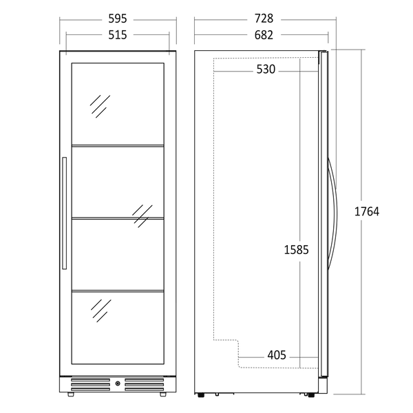 Vinkøleskab SV 138 B til 138 flasker - 1 zone - Scandomestic Brand: Scandomestic Produktmål, HxBxD, mm 1764 x 595 x 682 Brutto volume, ltr