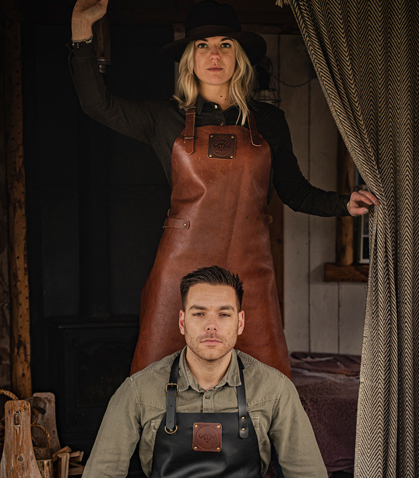 Witloft Læderforklæde Buffalo Cognac Buffalo læderforklæderne er fremstillet med stor omhu. Forklæderne er lavet af fuldfarvet eller spaltlæder. Da læder er et naturprodukt, bliver disse