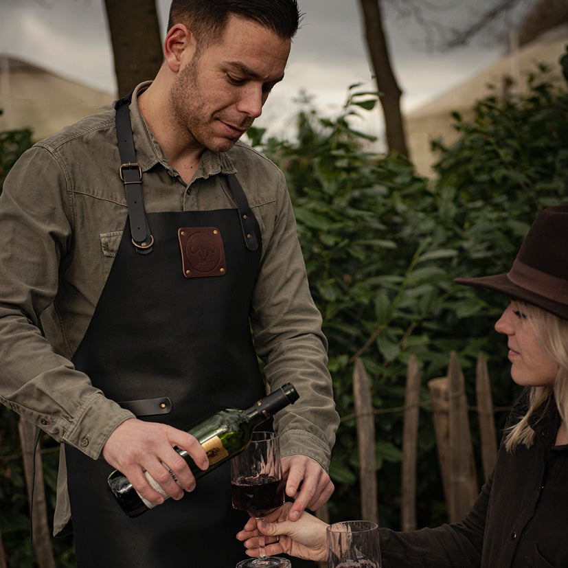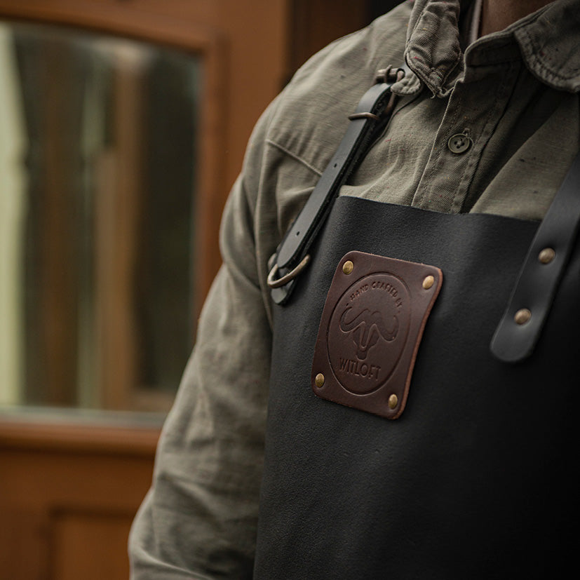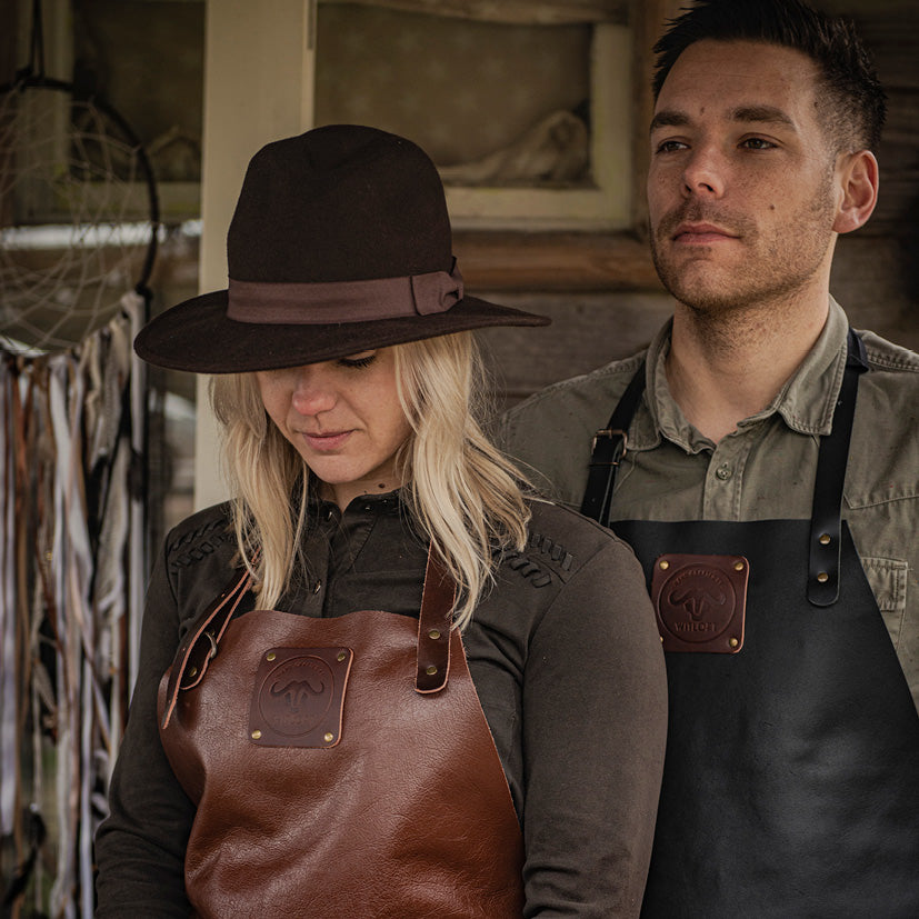 Witloft Læderforklæde Buffalo Sort Buffalo læderforklæderne er fremstillet med stor omhu. Forklæderne er lavet af fuldfarvet eller spaltlæder. Da læder er et naturprodukt, bliver disse