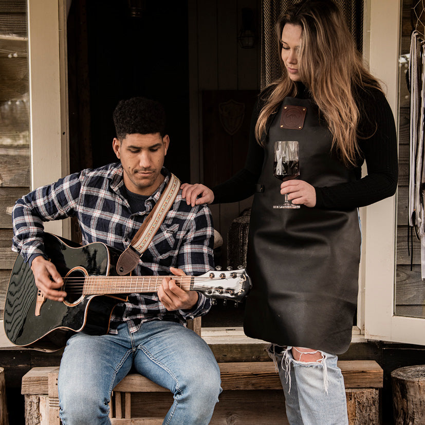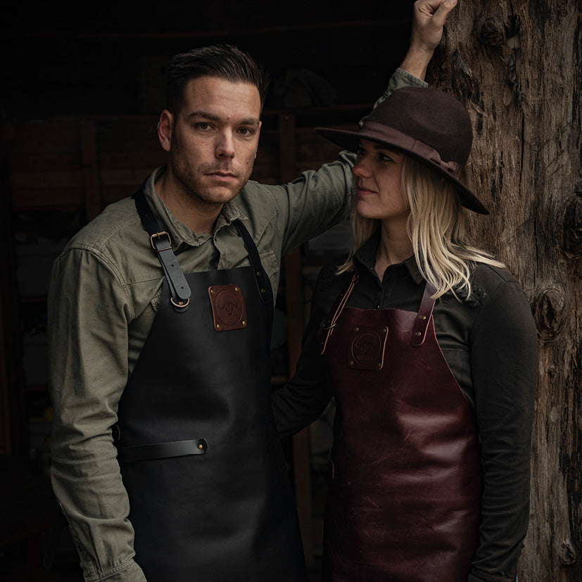 Buffalo læderforklæderne er fremstillet med stor omhu. Forklæderne er lavet af fuldfarvet eller spaltlæder. Da læder er et naturprodukt, bliver disse forklæder endnu smukkere med tiden. Bøffellæder er tyndere end koskind, derfor er forklæderne mere fleksible. Læderstropperne gør forklædet justerbart i hals og talje, og lærredet omkring halsremmen sikrer komfort. Produkt information:- Farve - Sort